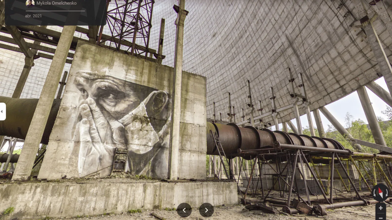 Schritt 4: Durch Klicken auf die Punkte gelangen Sie in den Reaktorbereich. Tschernobyl, mit mehreren Bildern seiner inneren Umgebung;
